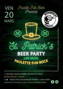 Chez Paulette est heureux de vous proposer une Soirée St Patrick
