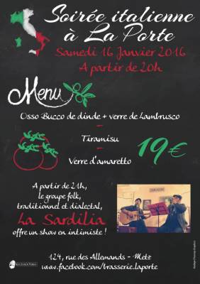 La Porte vous propose un menu spéciale pour cette soirée Italienne :