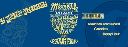 La Team Ricard débarque au Mouton Electrique le temps d’une soirée, il y aura Happy sur le ricard bien entendu pour l’occasion, du goodies en veux-tu en voilà, alors prévois ta soirée..