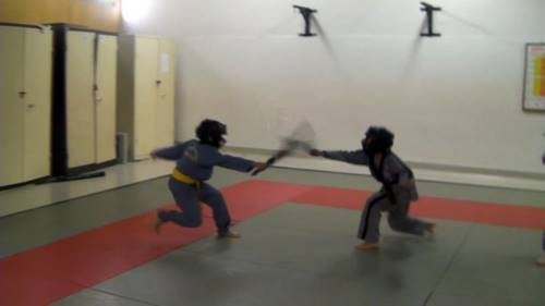 4) Combat armes factices en mousse : couteau, sabre, lance, bâton long