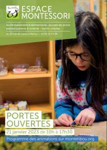 • d'une école Montessori, maternelle et élémentaire, accueillant environ 70 enfants de 3 à 12 ans, répartis en 3 classes pour 7 encadrantes
